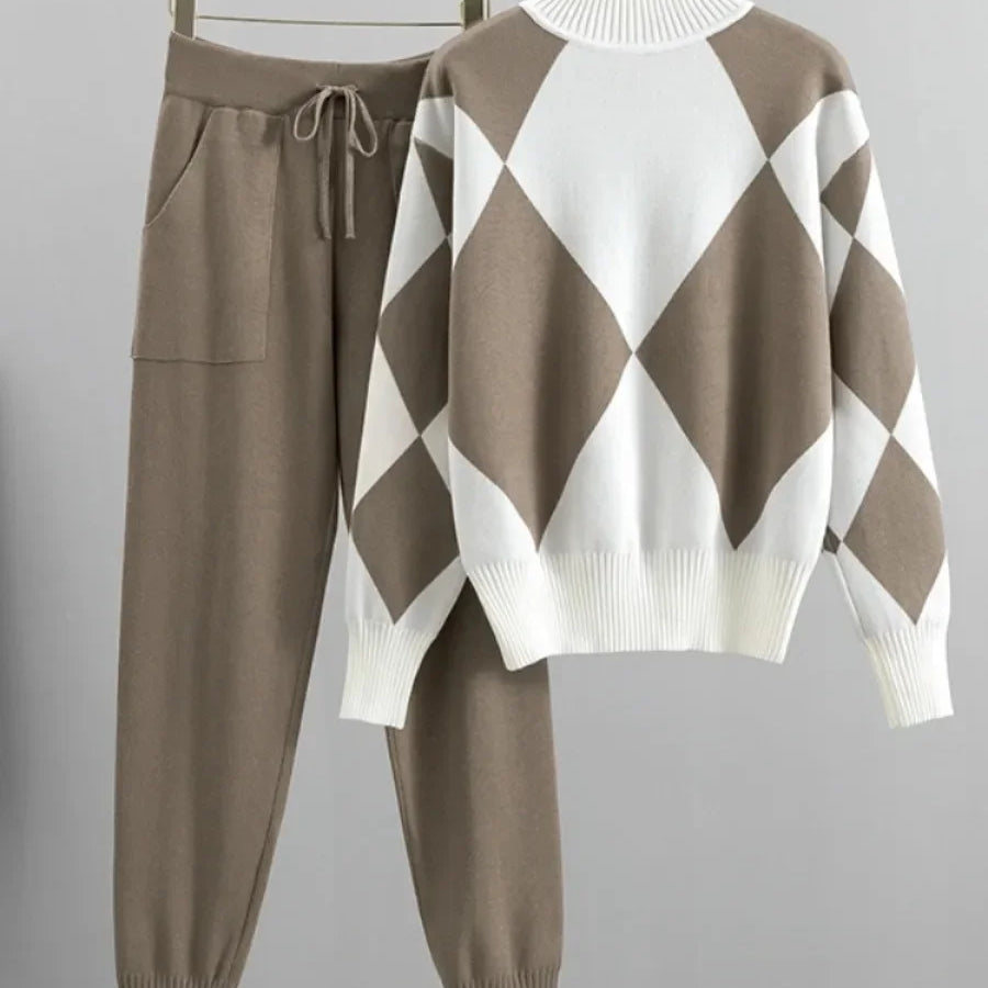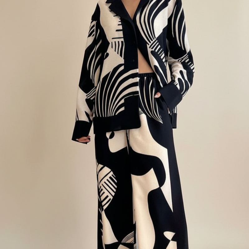 Valeria - Sofistikeret todelt sæt med rullekravebluse og bukser med brede ben