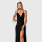 Med tynde stropper, draperet design ved brystet og en iøjnefaldende slids er den det perfekte valg til formelle lejligheder og særlige begivenheder, hvor du ønsker at skille dig ud.