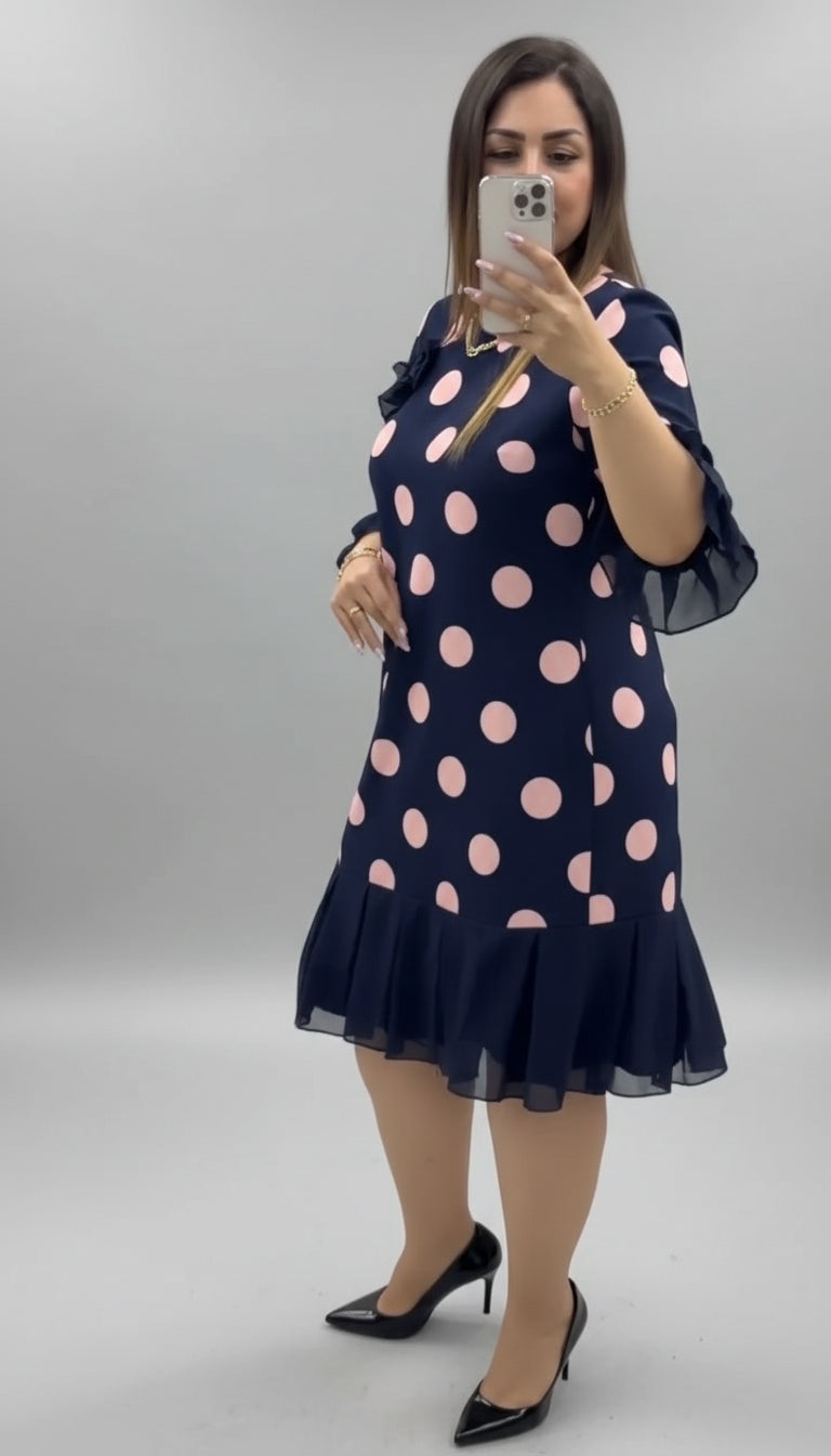 Tidløst Udtryk: Store prikker i klassiske farver gør denne kjole til en sikker favorit hele året rundt.