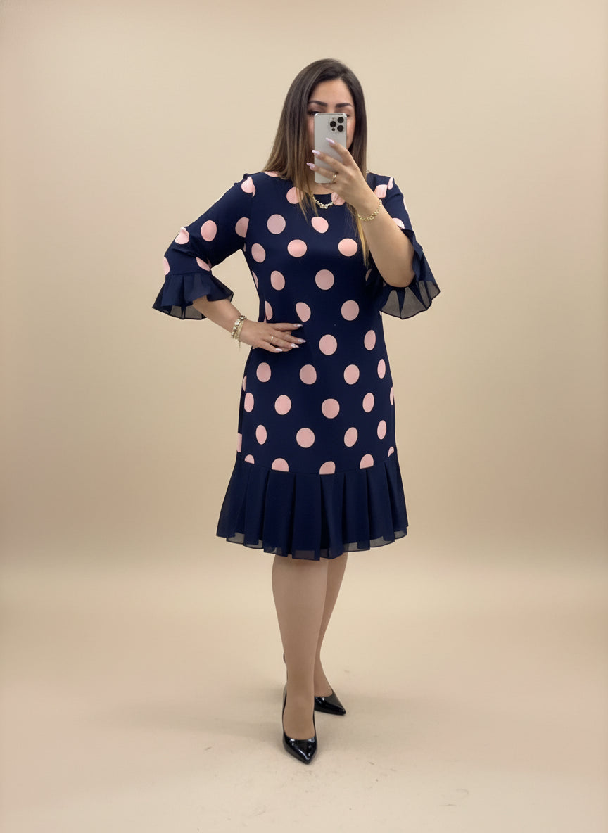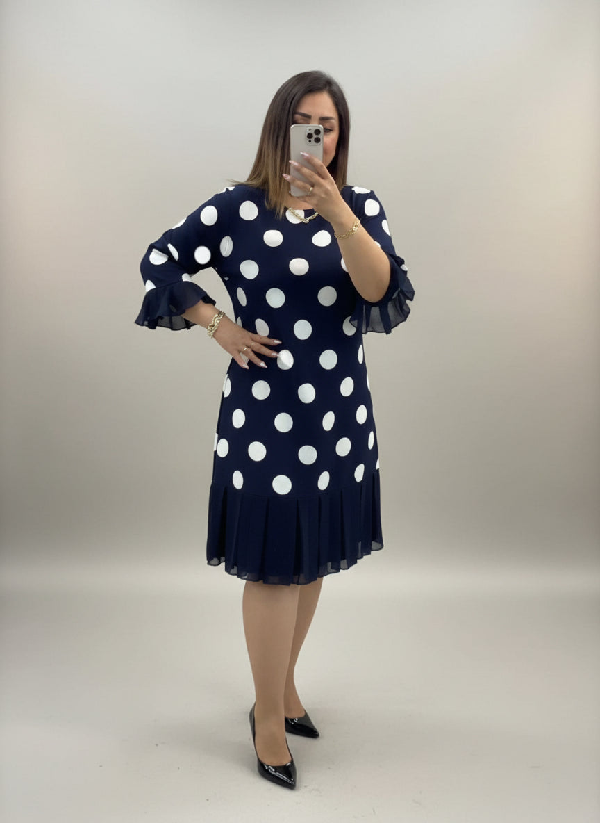 Mila | Damekjole med plisseringer i prikker