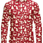 Herre Jule Rensdyr Rød Festlig Print Langærmet Skjorte