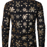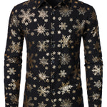 Herres Guld Jul Snefnug Print Langærmet Skjorte