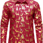 Mænds Gyldne Jule Rensdyr Festlig Print Rød Langærmet Skjorte