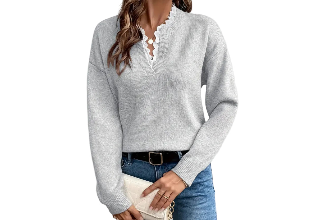 Denne strik er skabt til kvinder, der ønsker både stil og selvtillid uden at føle sig begrænset. Blondekraven tilføjer et diskret touch, der gør outfittet mere unikt, mens den behagelige pasform holder dig komfortabel hele dagen. Det er et stykke tøj, du vil bruge igen og igen – uanset anledning.