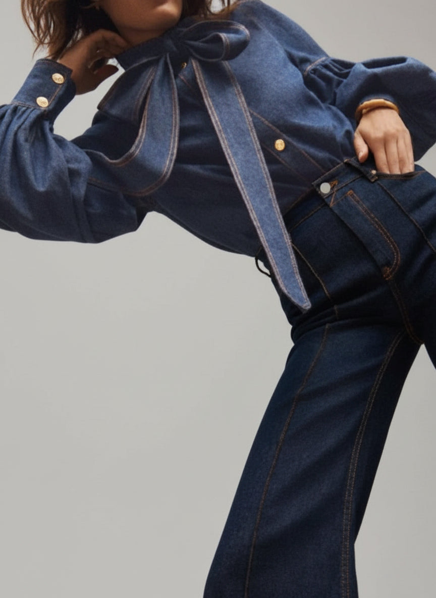 Vi præsenterer Gymystars Imitation Denim-skjorte, et must-have til kvinders garderobe denne efterårssæson.