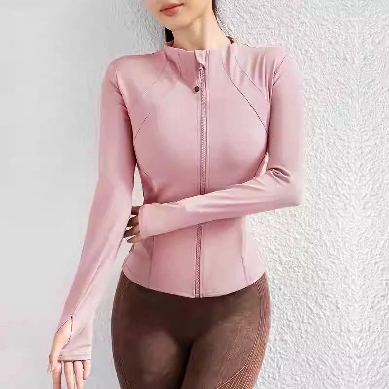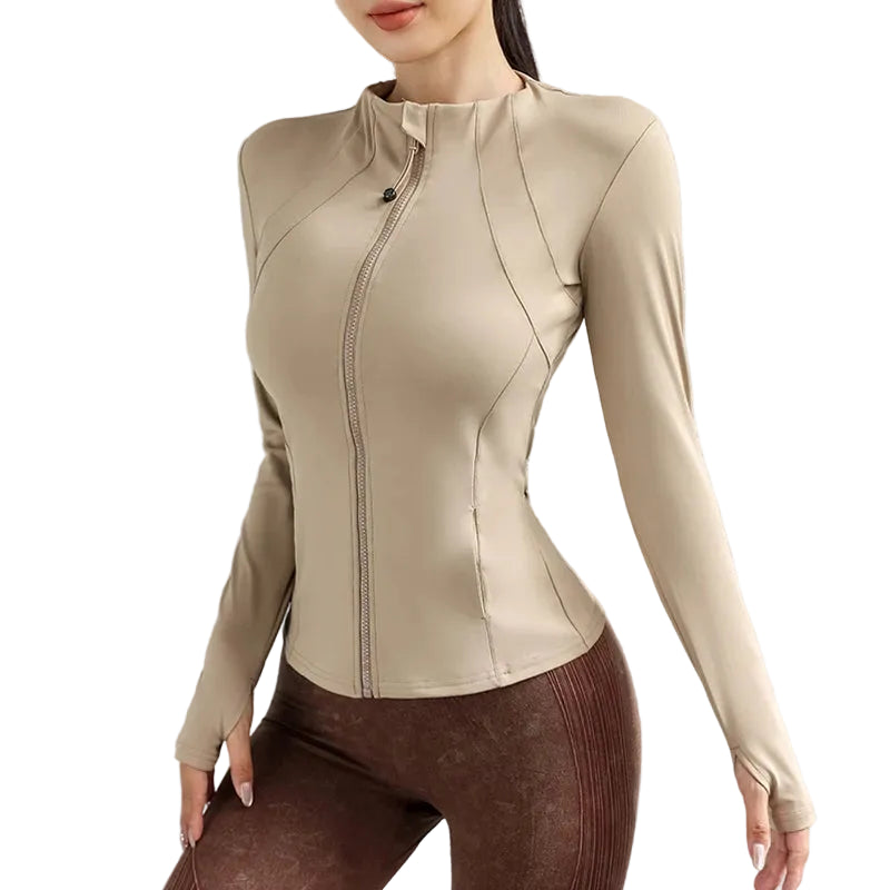 Apresentamos o novo casaco justo de cor sólida com zíper, projetado especialmente para mulheres que buscam estilo e performance em suas atividades.
