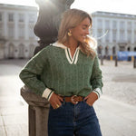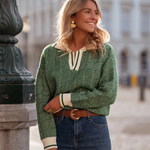 Tidlsøs, blød og stilren – Jane Trøjen i en dyb grøn farve er et rigtigt must til efteråret og vinteren. V-halsen og den foldede krave giver den en elegant følelse, mens den lige, let afslappede pasform giver bevægelighed og komfort.