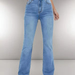 Den vasket denim giver et moderne touch, mens den slanke pasform fremhæver dine kurver og giver en slankende effekt, der fremhæver din silhuet.
