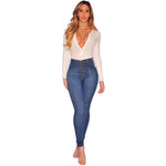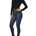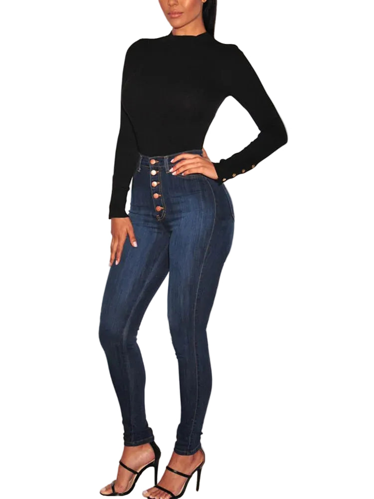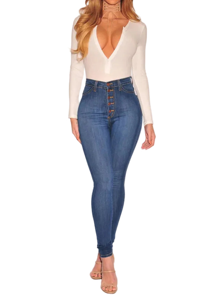 Kvinders skinny bukser med høj talje og vintage knapper