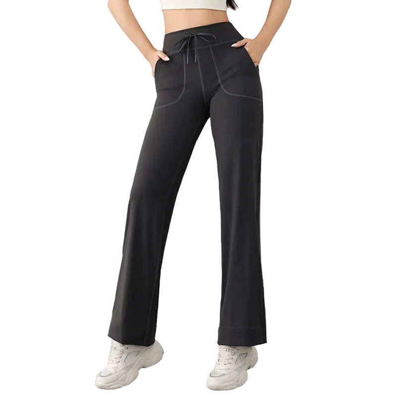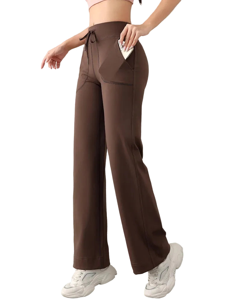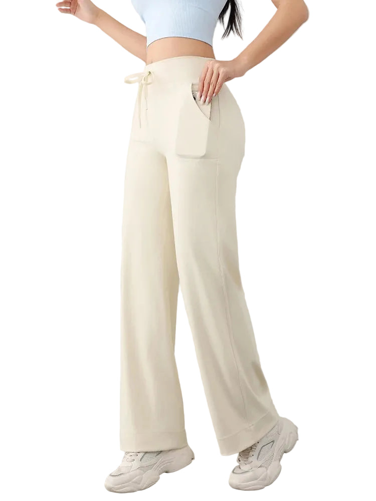 Med et løst og lige design er disse bukser perfekte til daglige aktiviteter, lige fra en yogasession til en afslappende tur i parken. Linningen med snøre giver mulighed for individuel tilpasning, hvilket sikrer komfort hele dagen.