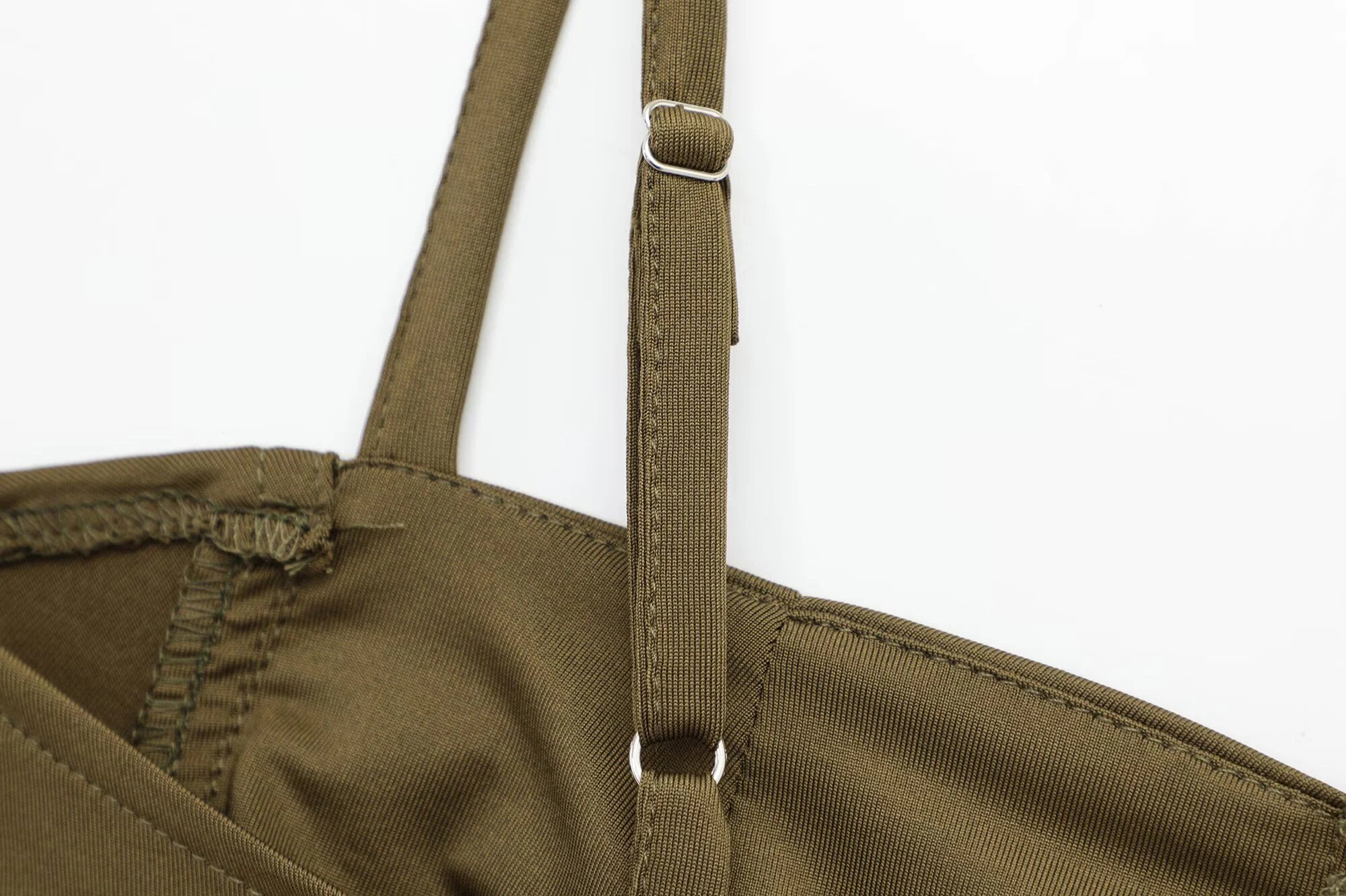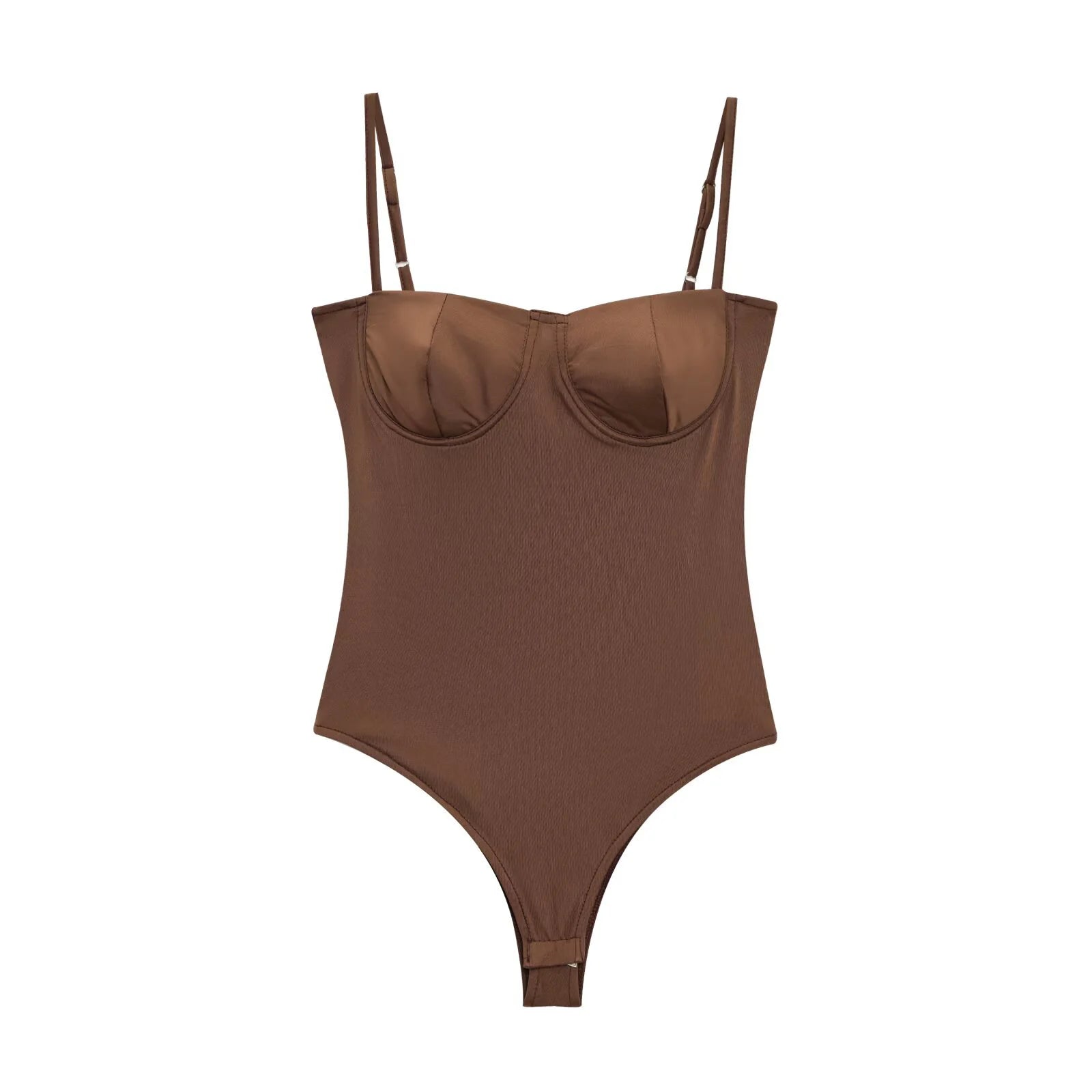 Med et moderne og dristigt design har den en høj talje, der tilpasser sig kroppen, mens brystpuderne giver ekstra støtte og et strejf af sensualitet.
